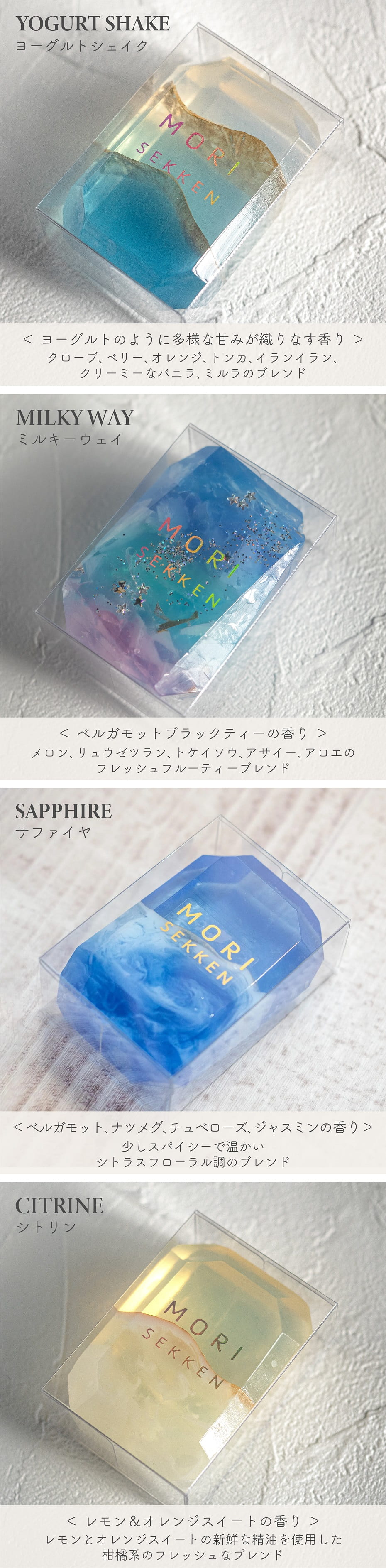 森石鹸 ムーンストーン | 森石鹸 マジックアワー | 森石鹸 ラブラドライド |