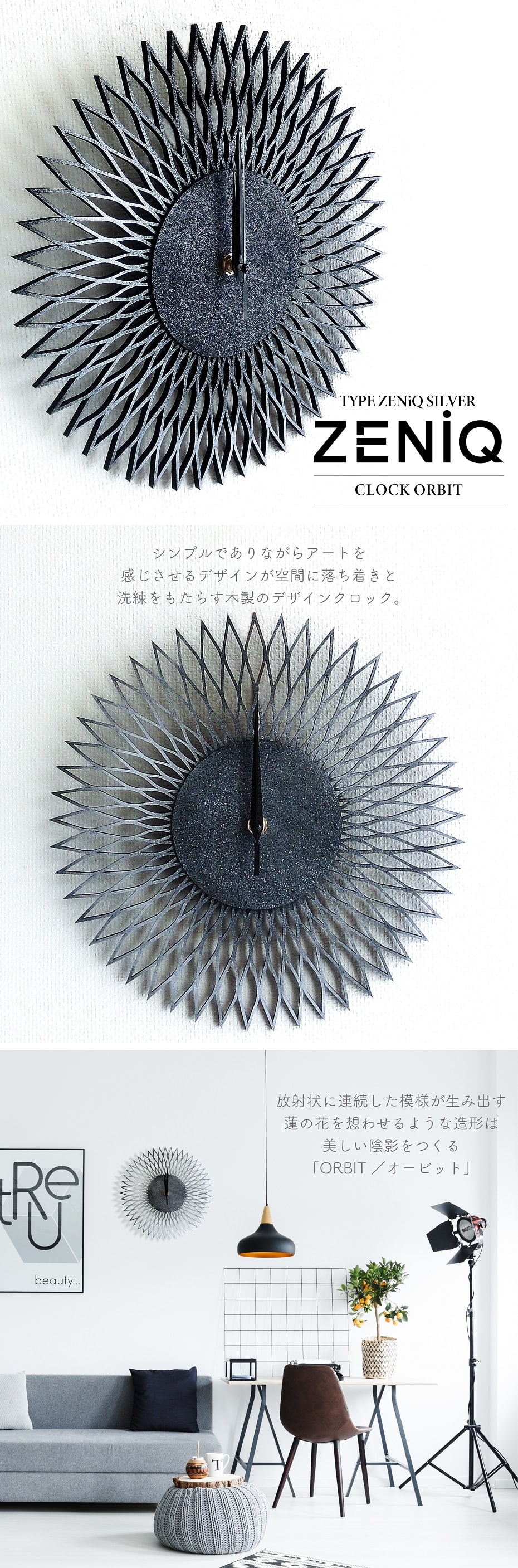 時計 掛け時計 ZENiQ ゼニック クロック オービット ゼニックシルバー 木製 Φ約29cm デザインクロック 黒×シルバー 壁面装飾 雑貨 オブジェ ギフト インテリア