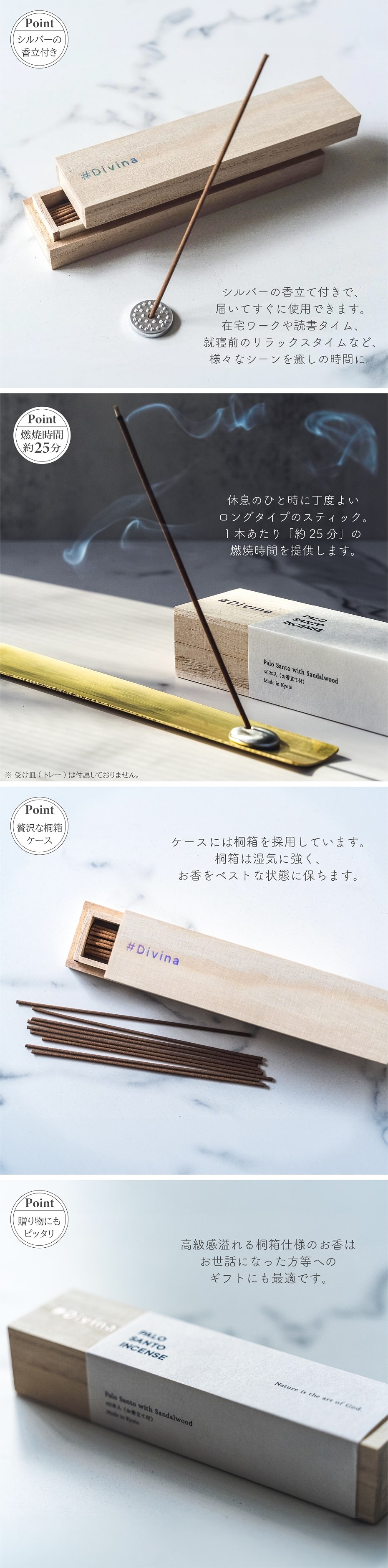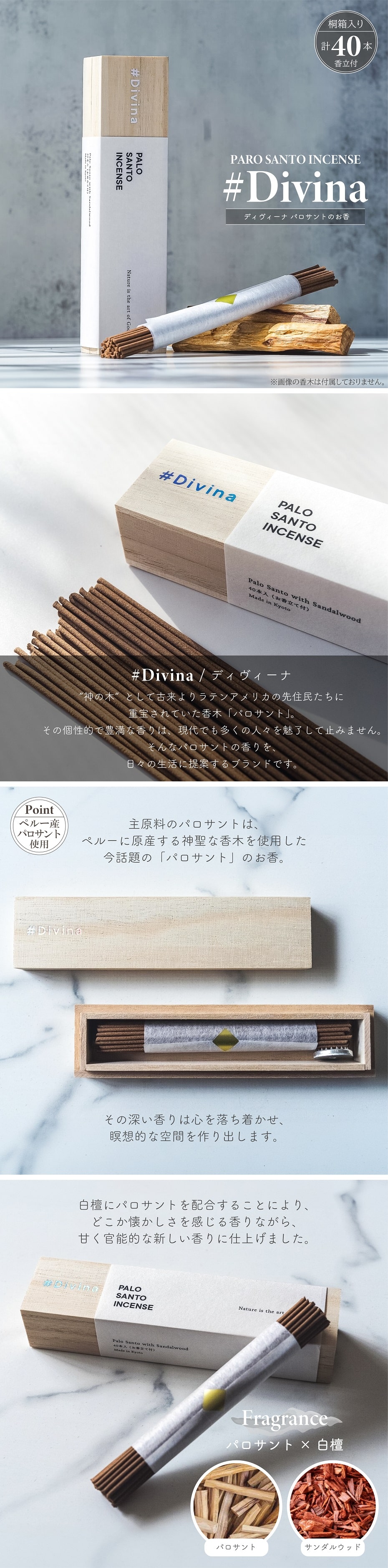 アロマ お香 ディヴィーナ パロサント スティック香 桐箱仕様 40本入り お香立付き 天然原料 サンダルウッド 白檀 インセンス 浄化 おしゃれ ギフト インテリア
