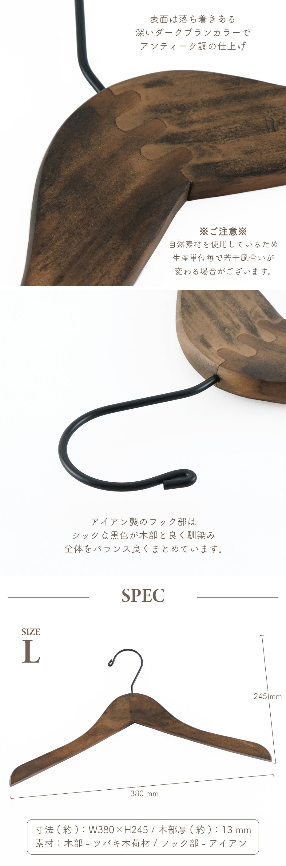 収納用品 shesay シセイ ロータスハンガー Lサイズ 大人用 木製 ダークブラウン アンティーク調 アパレル ディスプレイ クローゼット ワードローブ インテリア