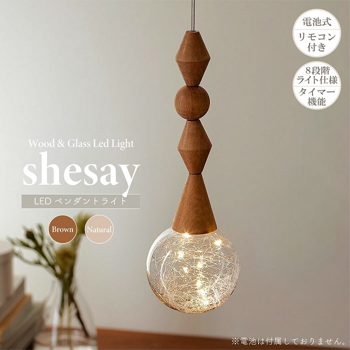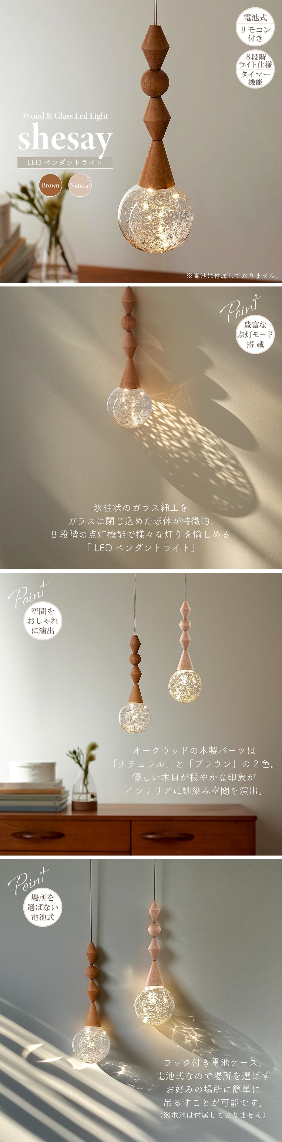照明 吊下げ灯 shesay シセイ LED ペンダントライト リモコン付 電池式 装飾用 フック付き 8段階LEDライト イルミネーション ディスプレイ タイマー インテリア