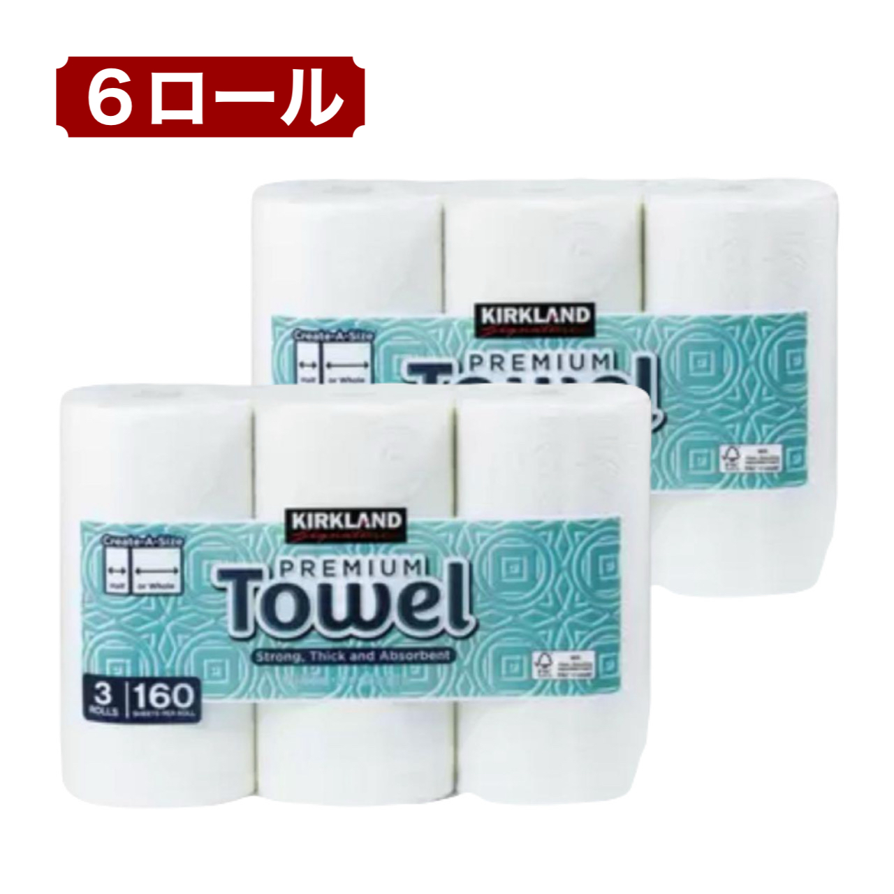 カークランド ペーパータオル 6ロール KIRKLAND キッチンペーパー 厚手 強力吸収 160カット 大容量 業務用 コストコ