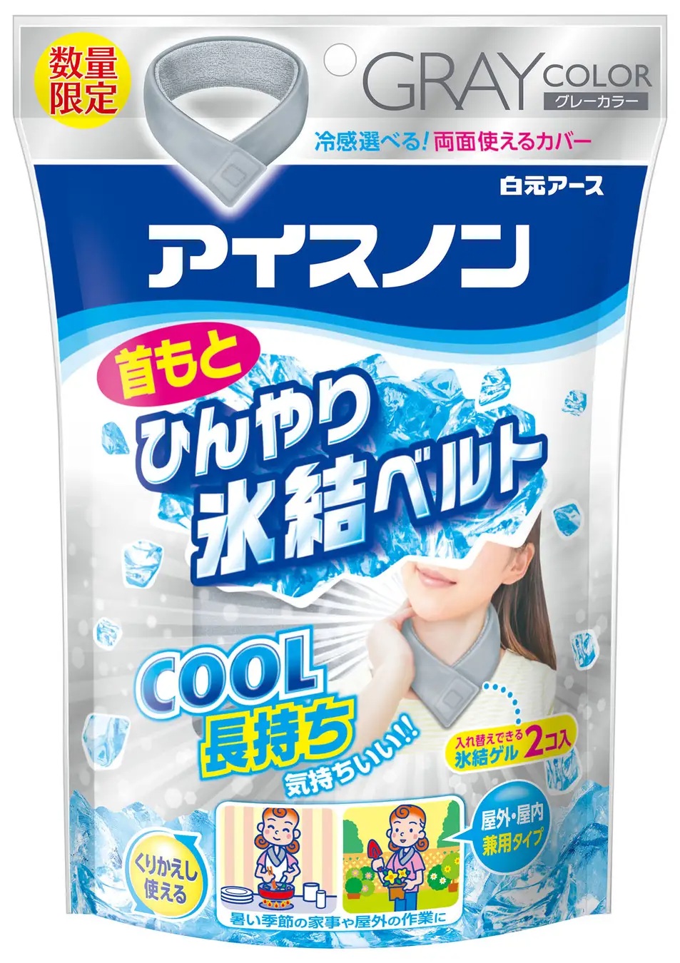 (在限)アイスノン 首もとひんやり氷結ベルト グレー 熱中症 熱中症対策 熱中症対策グッズ 長期間 最強 農作業 首 キッズ スポーツ サッカー 現場 冷却
