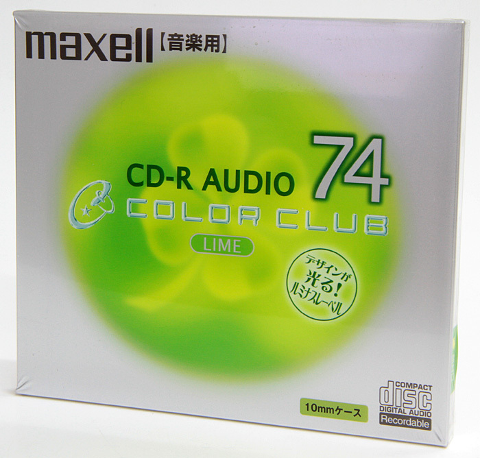 【デッドストック品】CD-R Audio 74 音楽用 光る!ルミナスレーベル マクセル maxell CDRA74C.LM1P ライム
