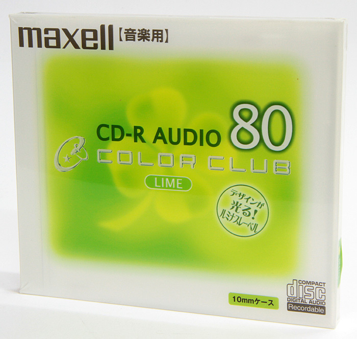 【デッドストック品】CD-R Audio 80 音楽用 光る!ルミナスレーベル マクセル maxell CDRA80C.LM1P ライム