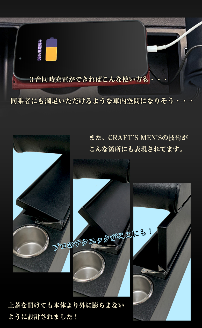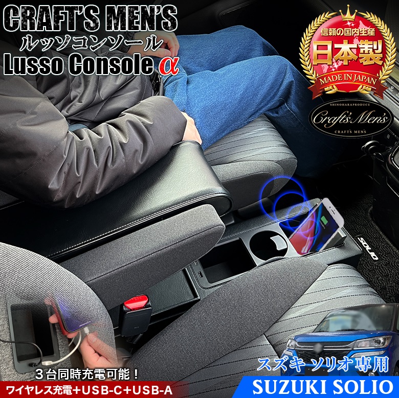 ソリオ Lusso α コンソールボックス CRAFTS MENS lusso アームレスト コンソール スマホホルダー ドリンクホルダー 充電 TYPEc