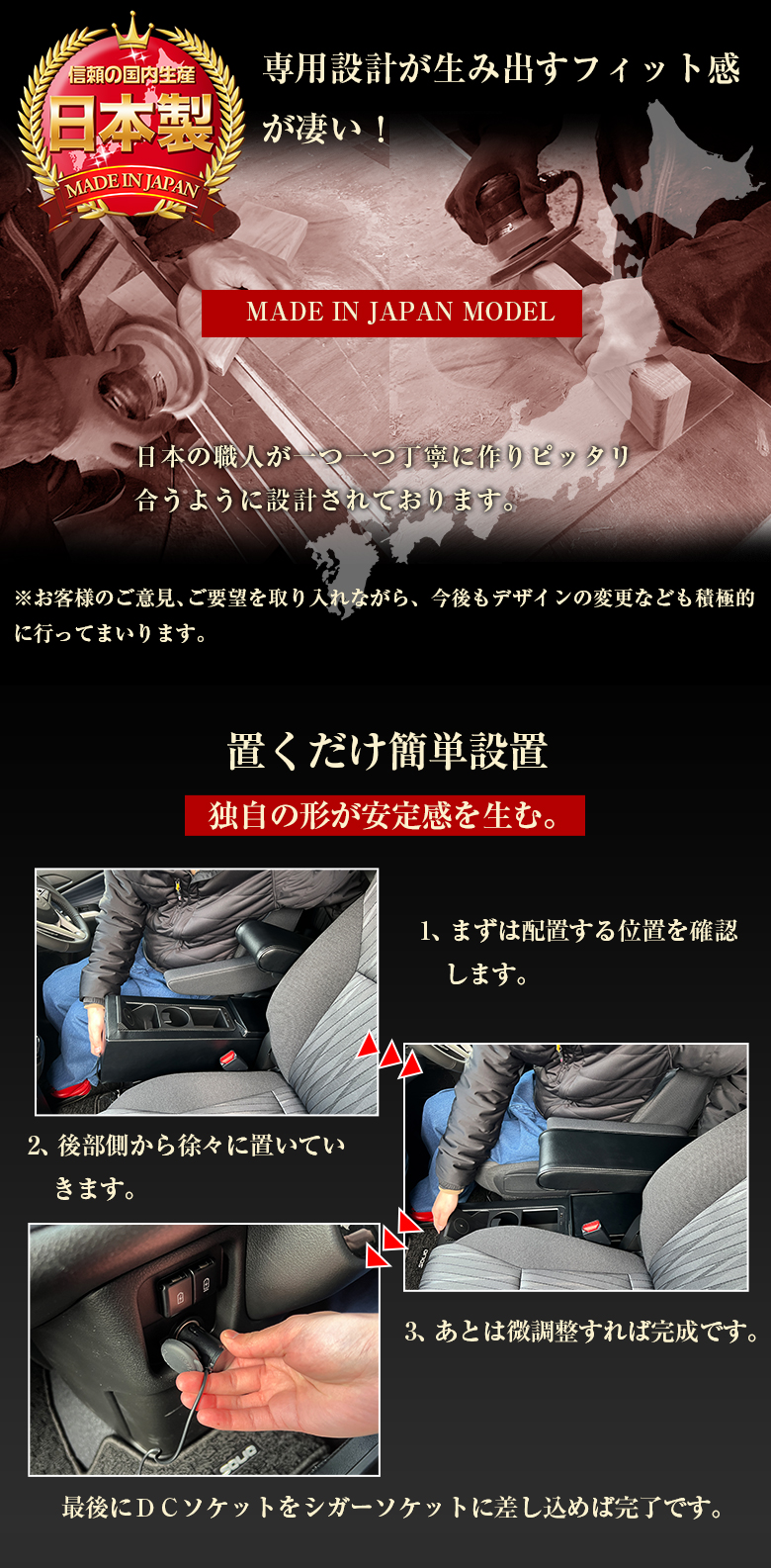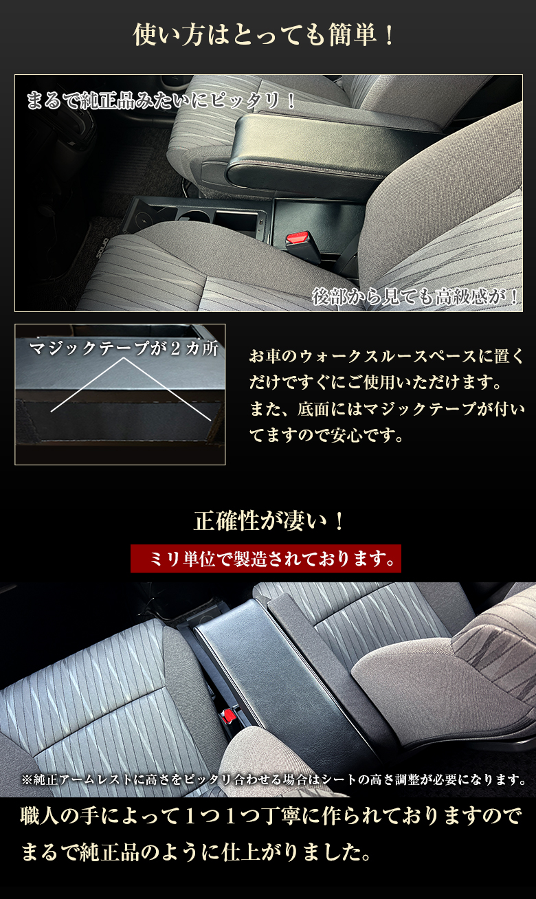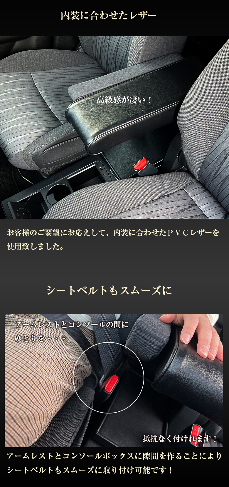 ※純正アームレストの付いていないお車の場合、隙間が空いてしまう場合もございますので、