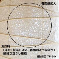 圧迫感の少ない楕円形(ストレート巻きタイプ)のフォルムが、やさしい空間を創造します。 光を通してみると、春雨模様が浮き出されて和紙ならではの柔らかい上品なあかりへと変化します。 |