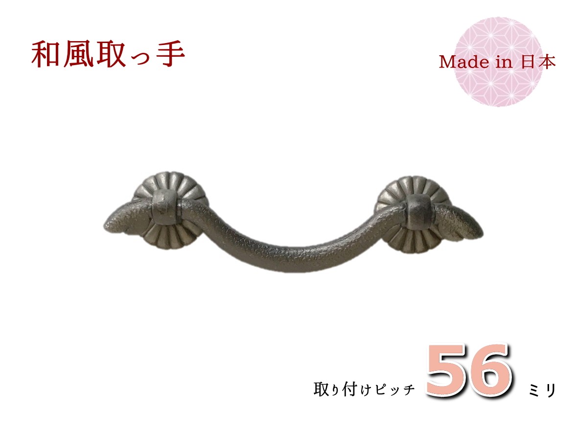 取っ手 つまみ/菊座付蛭カン 小 銀古美色【ピッチ:56mm】日本製