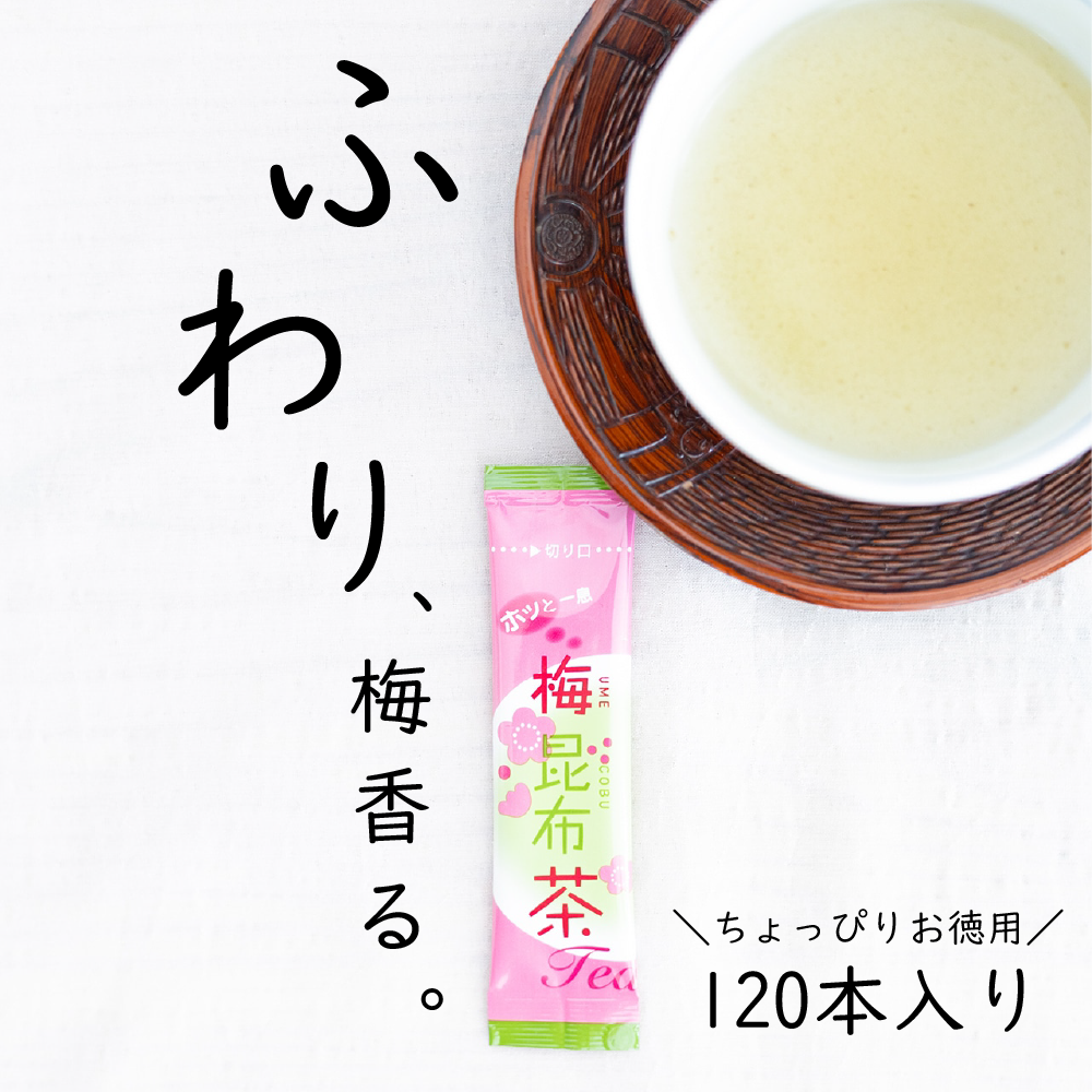 【送料無料】梅昆布茶スティック 120本 北海道産真昆布使用 お徳用 手軽な粉末 スティックタイプ 持ち運びに便利! 職場に学校に旅行に。 お湯だけで すぐ 時短