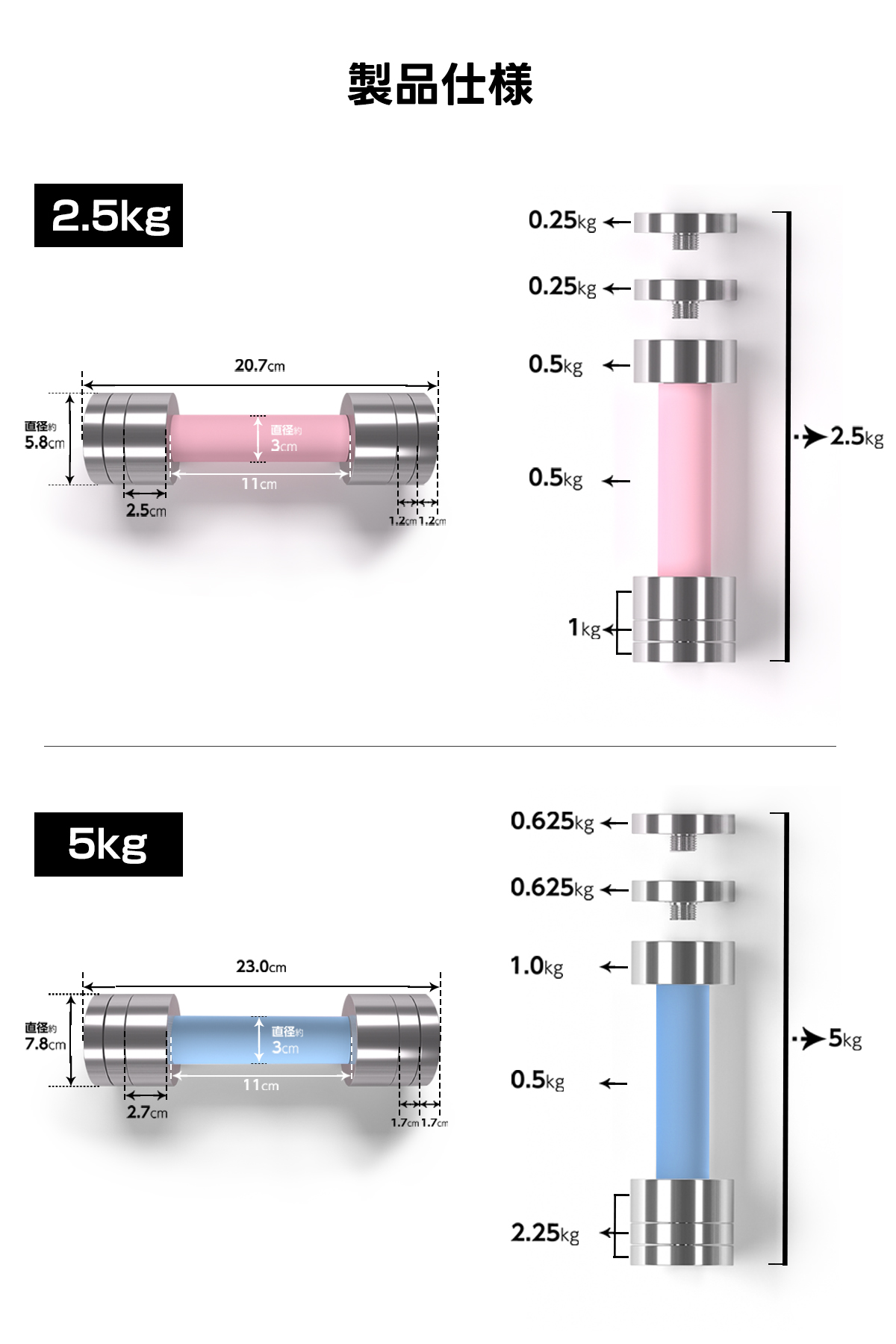 2.5kg × 2個セット(ピンク/ブルー)