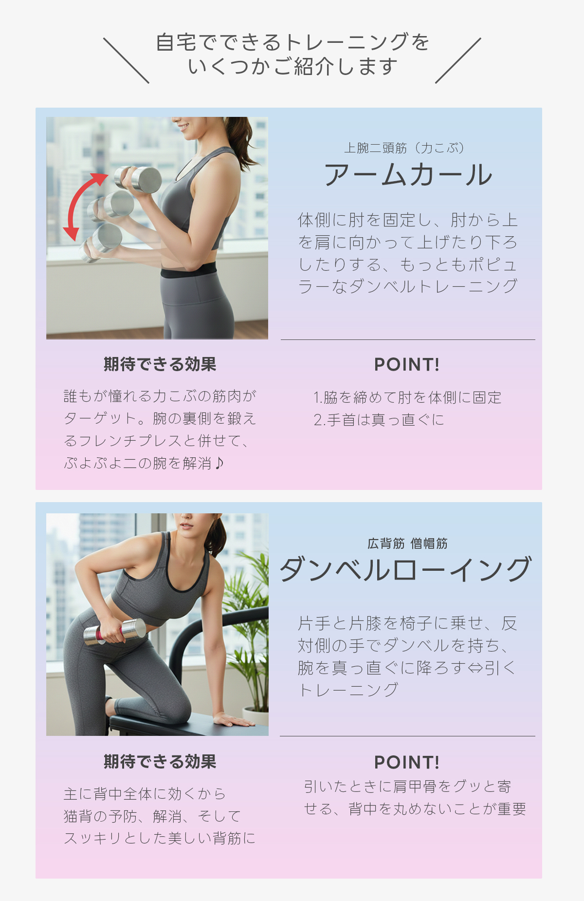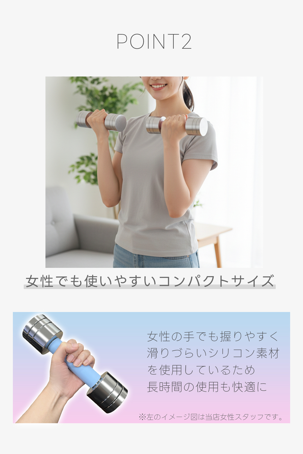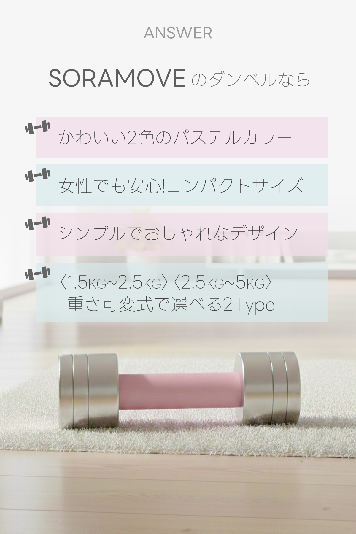 軽めのエクササイズからしっかり筋トレまで、自分に合った重量を選べます。
