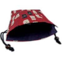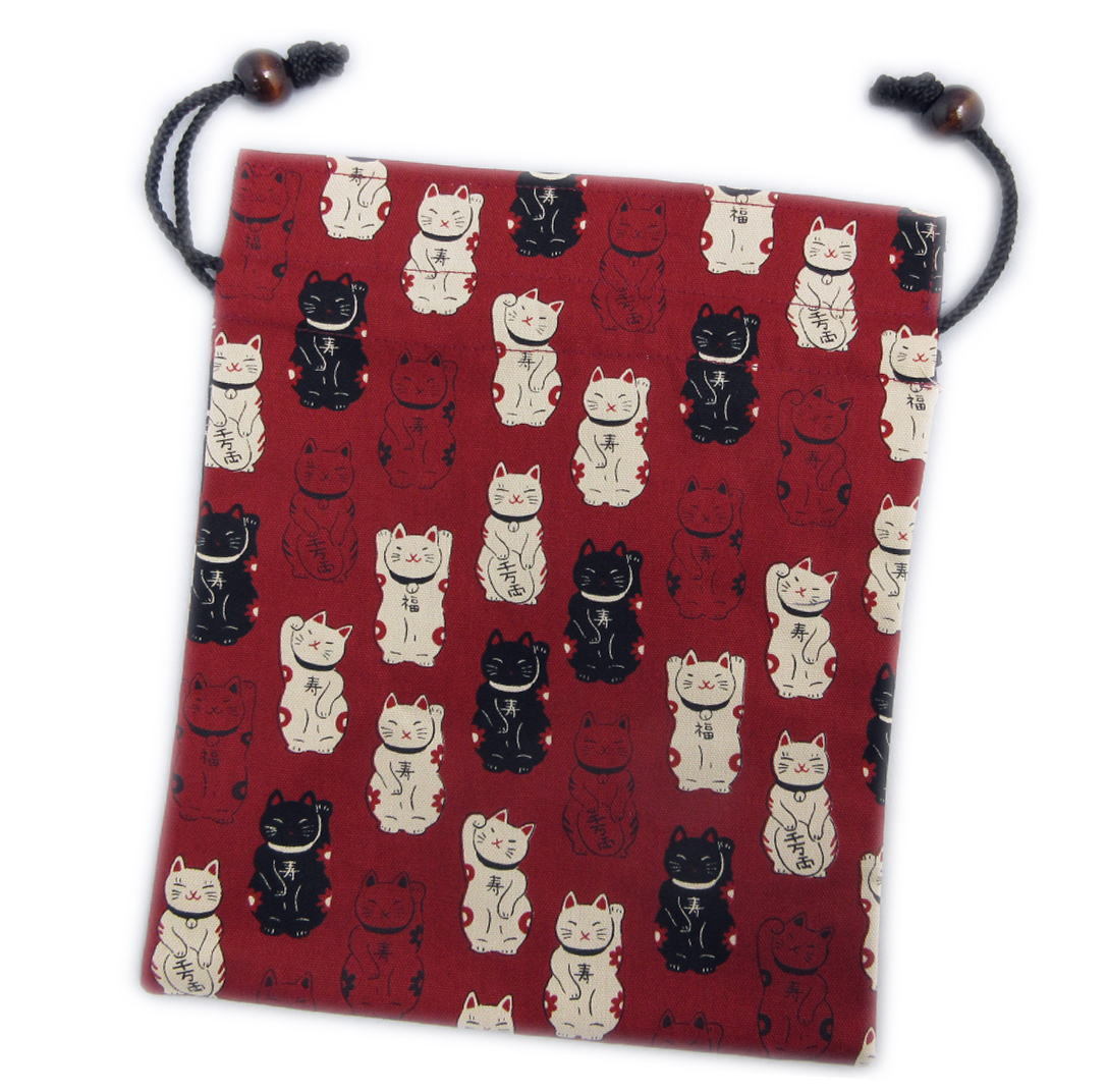 平巾着 巾着袋 小物入れ 和柄 木玉付 福あつめ招き猫濃赤 日本製 女性用 男性用 キッズ