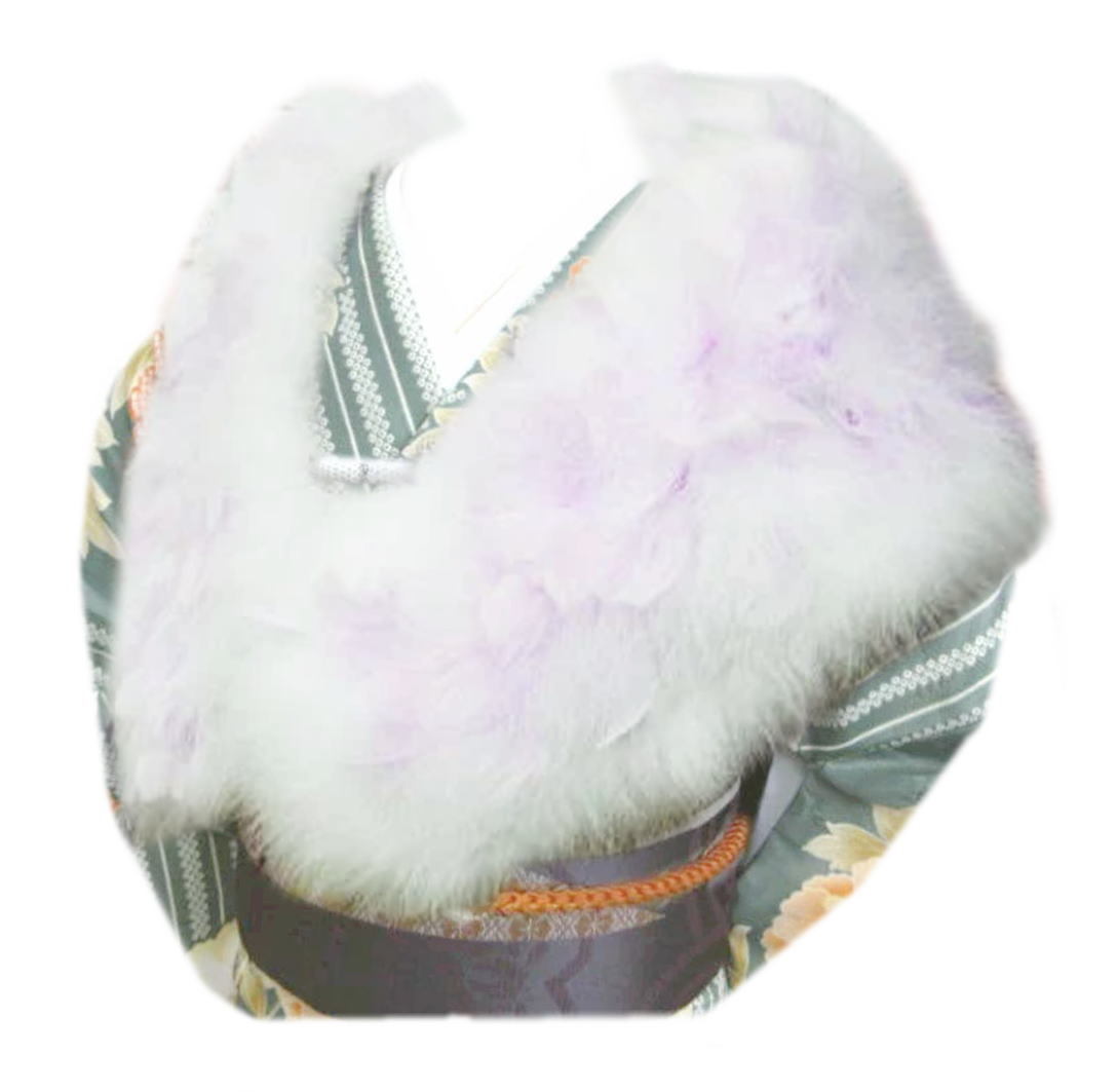 ショール スワン 羽毛 白にパープル羽根 振袖 成人式 卒業式 袴 振袖用 はかま 着物 白色 薄紫色