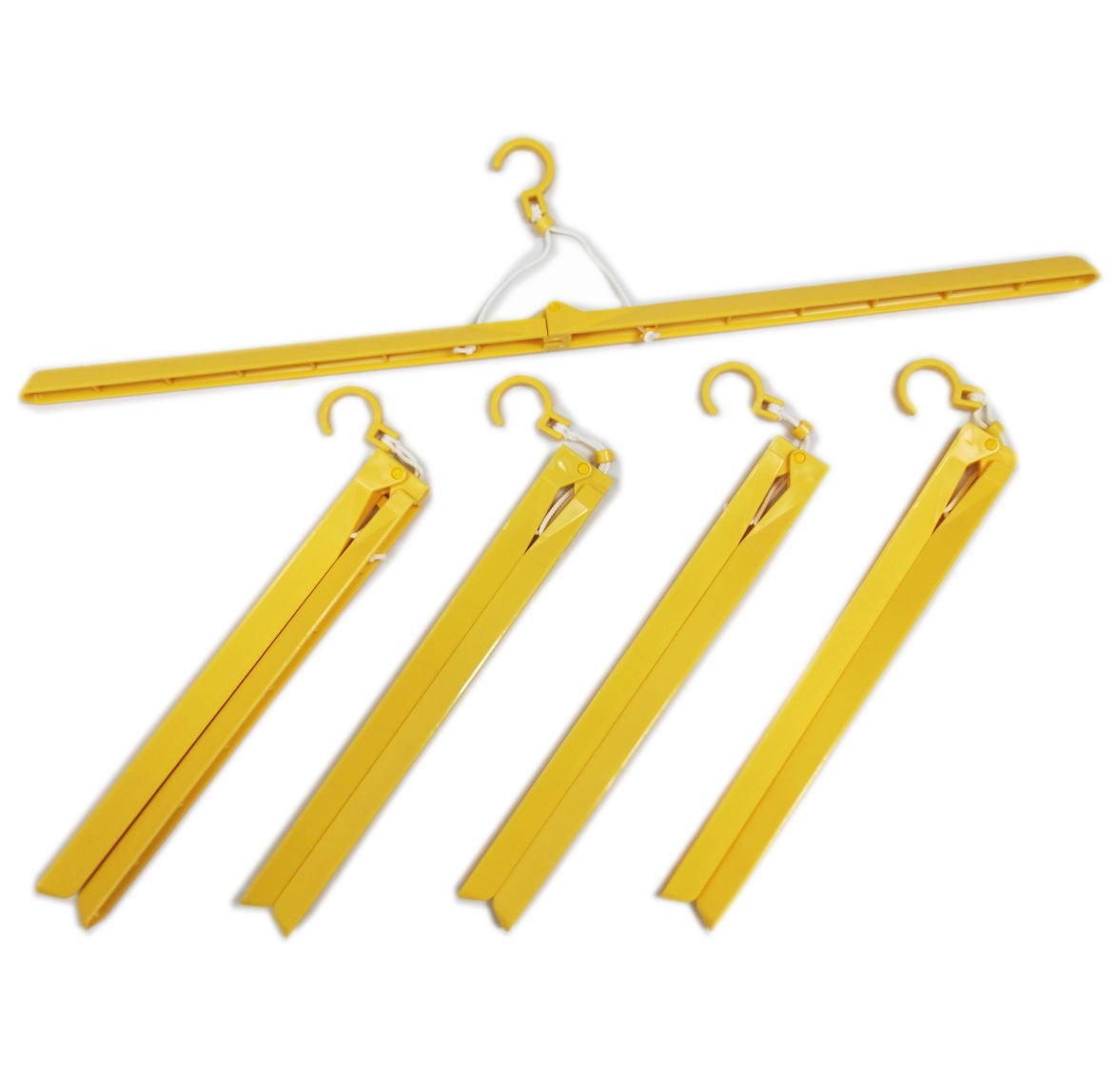 パタンと広げるだけで簡単。二つ折りのコンパクトなハンガー。