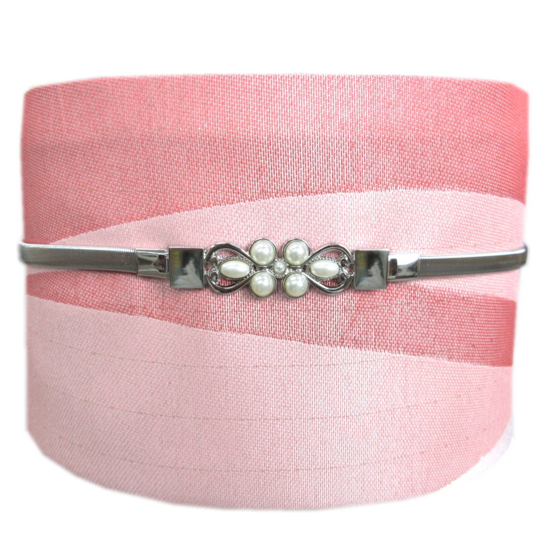帯飾り 帯締め ワンタッチ パール付き 伸縮バネ銀 浴衣 ゆかた 着物 きもの 小紋 洗える着物 銀色 シルバー
