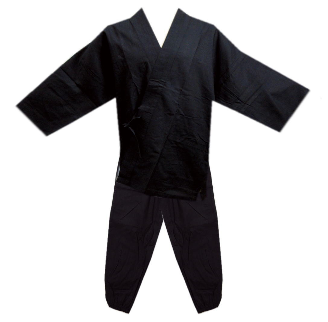 作務衣 さむえ 女性用 男性用 綿 無地 黒 S (通常女性用のM・L・通常男性用のS) 部屋着 ユニフォーム 簡単 ユニセックス レディース メンズ 黒色