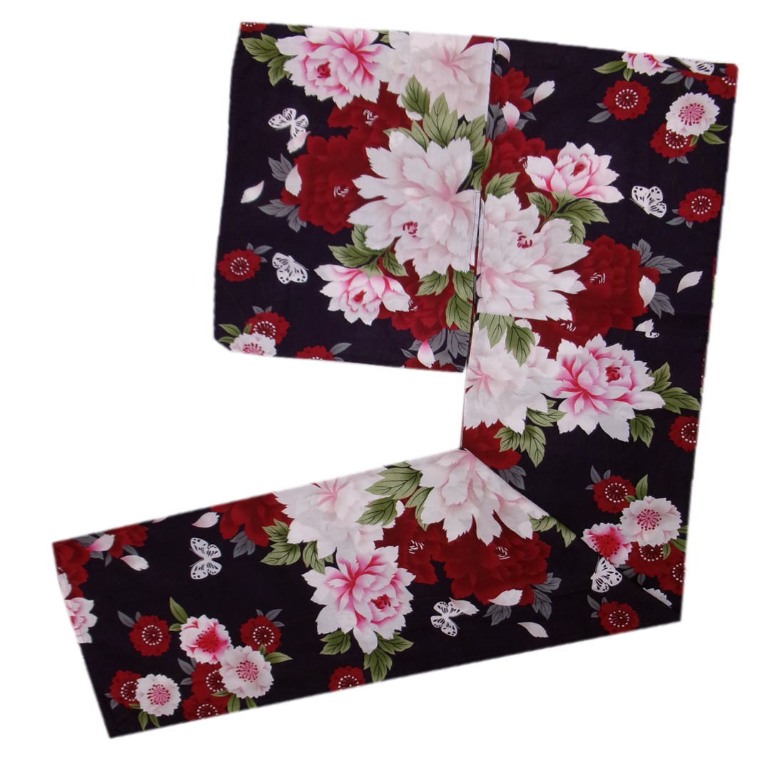 浴衣 濃紺色地牡丹八重桜蝶 フリー 女性用 単品 ゆかた レディース 綿 桜柄 さくら 蝶柄