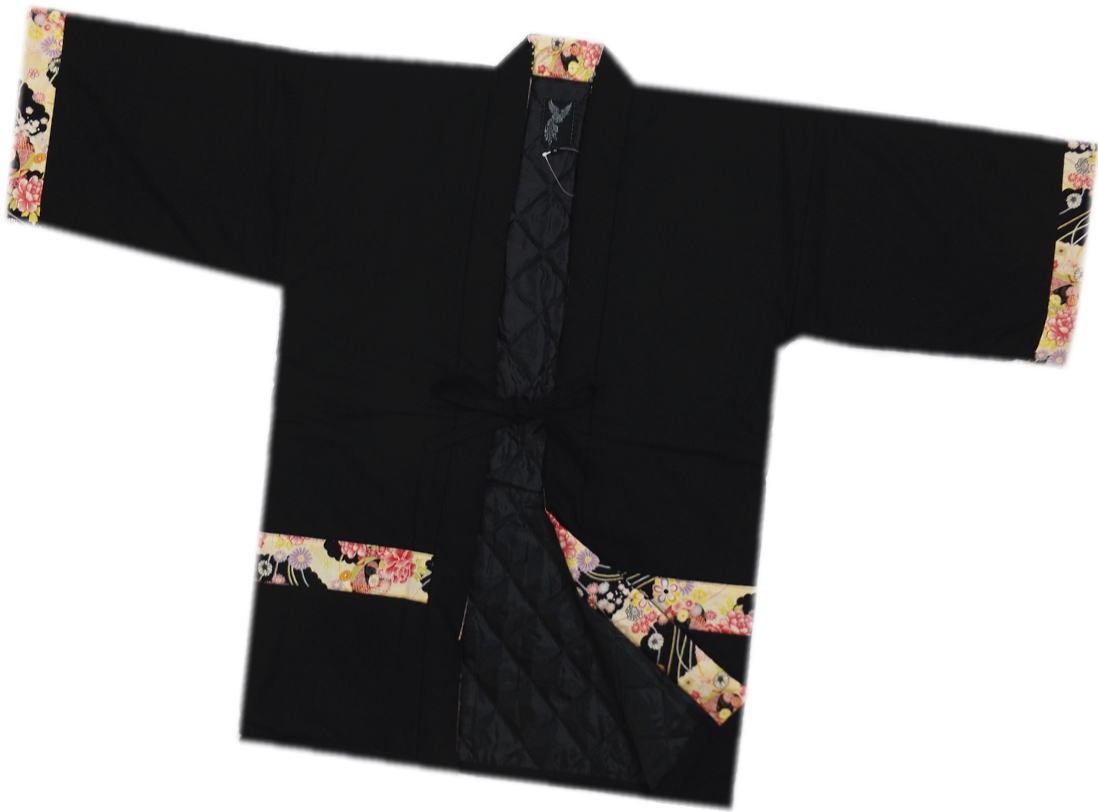 半天 はんてん 女性用 刺繍入り 和柄 パッチワーク 中綿入 黒色地 黒地古典花 M L