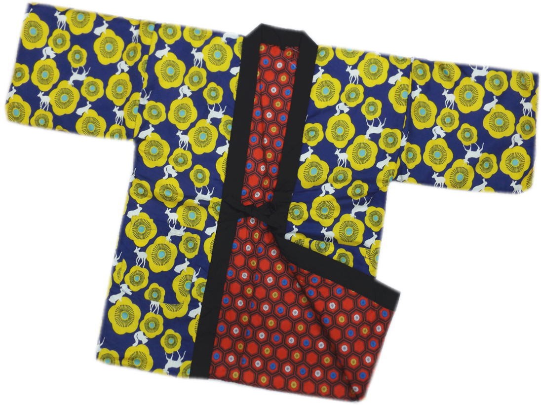 和柄生地を使った、モダンでオシャレな半てん。