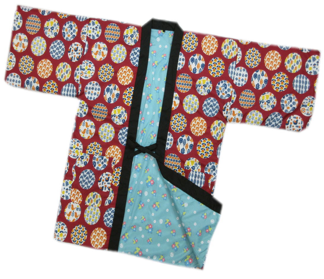 半天 袢纏 はんてん 女性用 和柄 リバーシブル 綿入 濃赤色地カラフル柄ドット フリー(MーL) 水色地うさぎ花