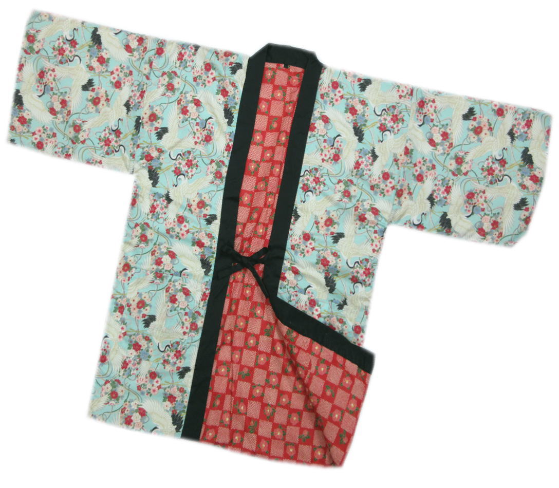 半天 袢纏 はんてん 女性用 和柄 リバーシブル 綿入 水色地鶴花珠 フリー(MーL) 赤色地市松椿ひった
