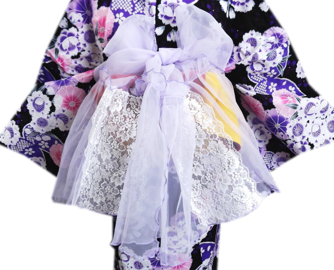 プチ兵児帯 ぷちへこ帯 薄紫色地フリルレース 浴衣 ゆかた 女性用 キッズ