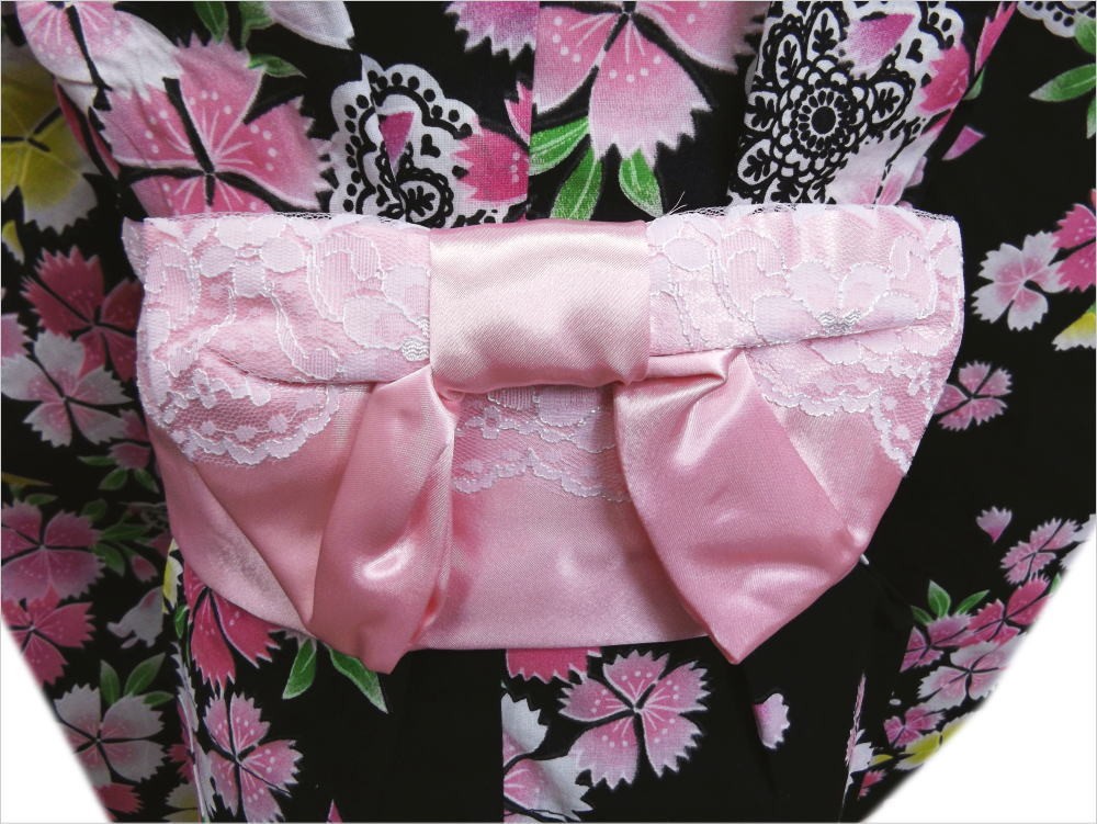 結び帯 ワンタッチ キッズ 子供用 レース ピンク 浴衣 ゆかた 付け帯 作り帯 女の子 女児 簡単