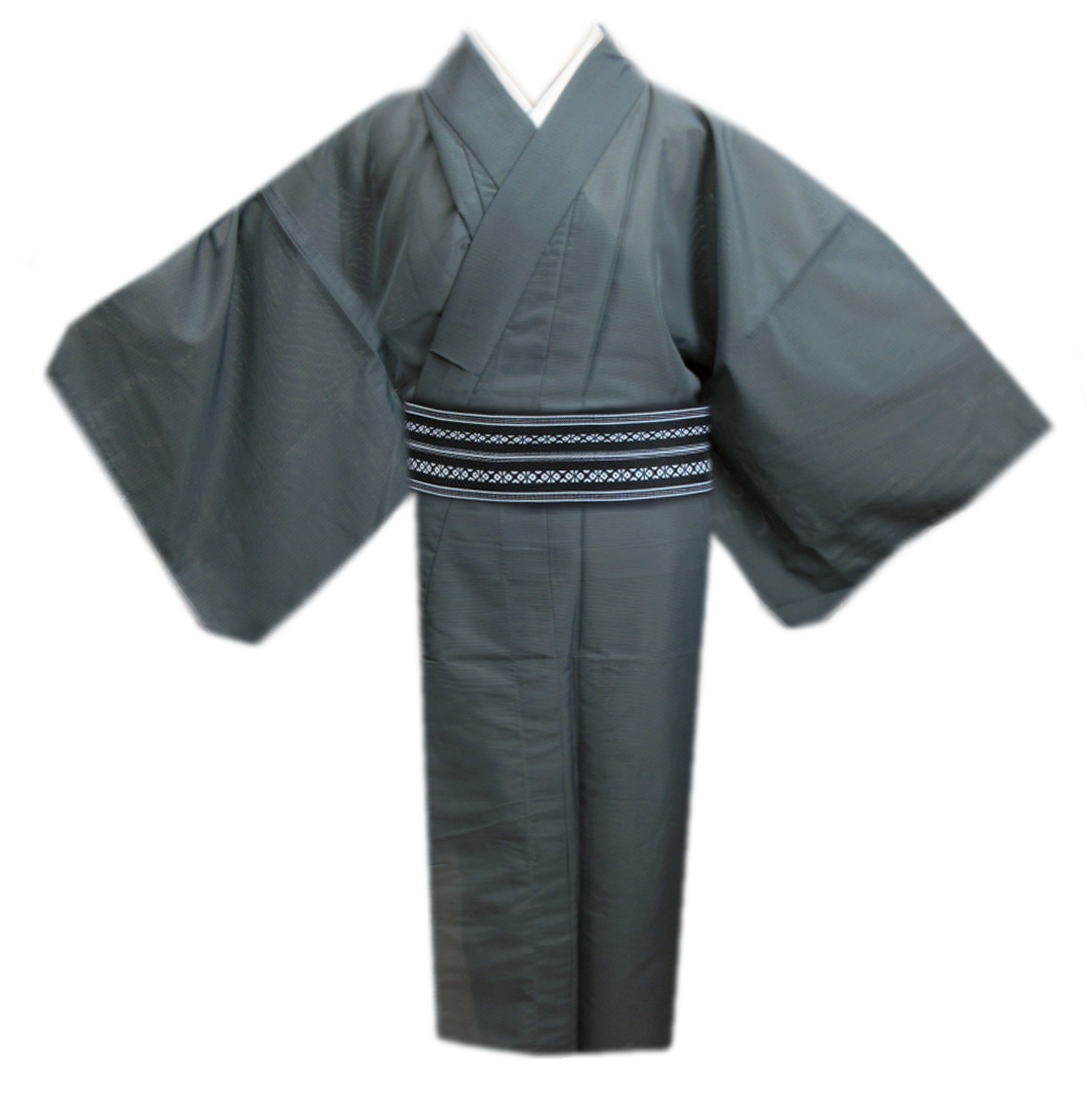 【訳有り 少難あり】 着物 メンズ 男性 夏用 駒絽 洗える ワンタッチ角帯 2点セット ブルーグレー S