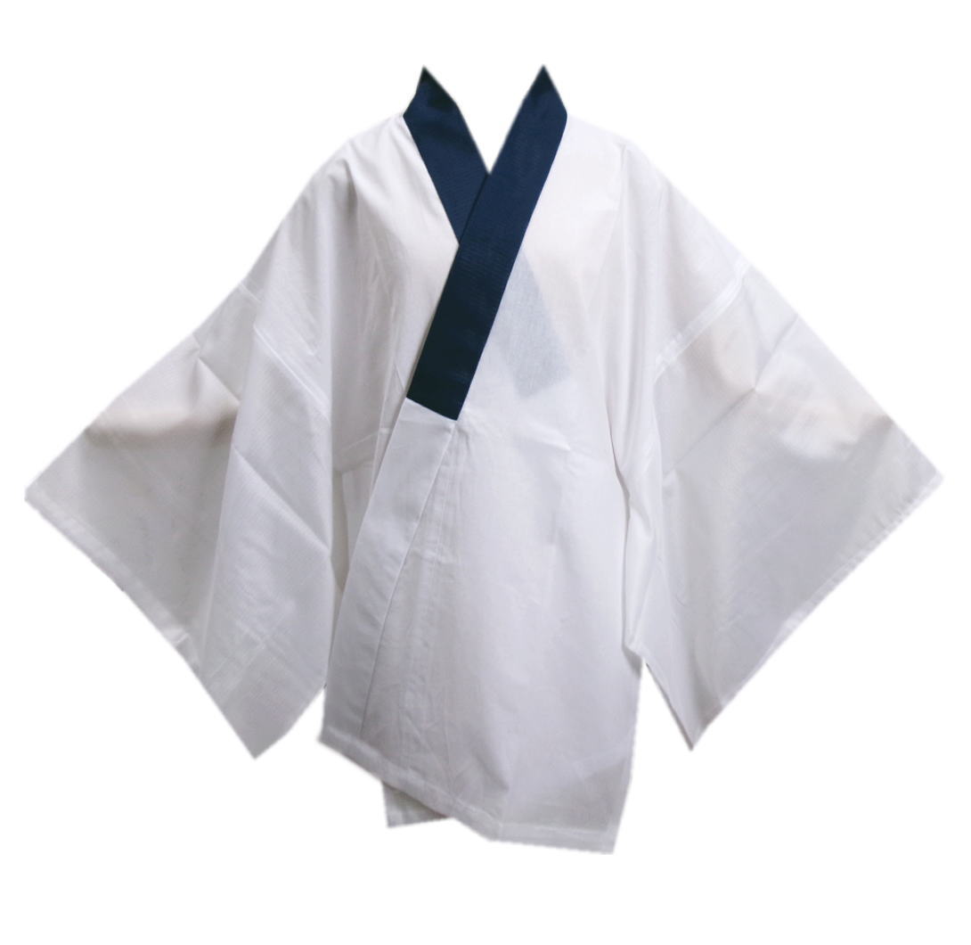 身頃部分は汗を吸収する綿生地。掛衿と袖はポリエステル素材です。