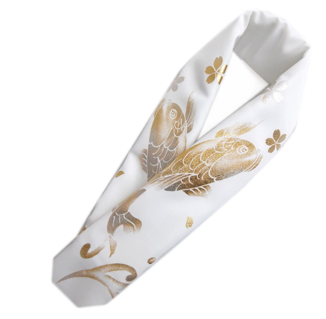 【訳有り 少難あり】 半衿 半襟 洗える 和柄 白色地 金銀彩 鯉桜 メンズ 男性用 女性用