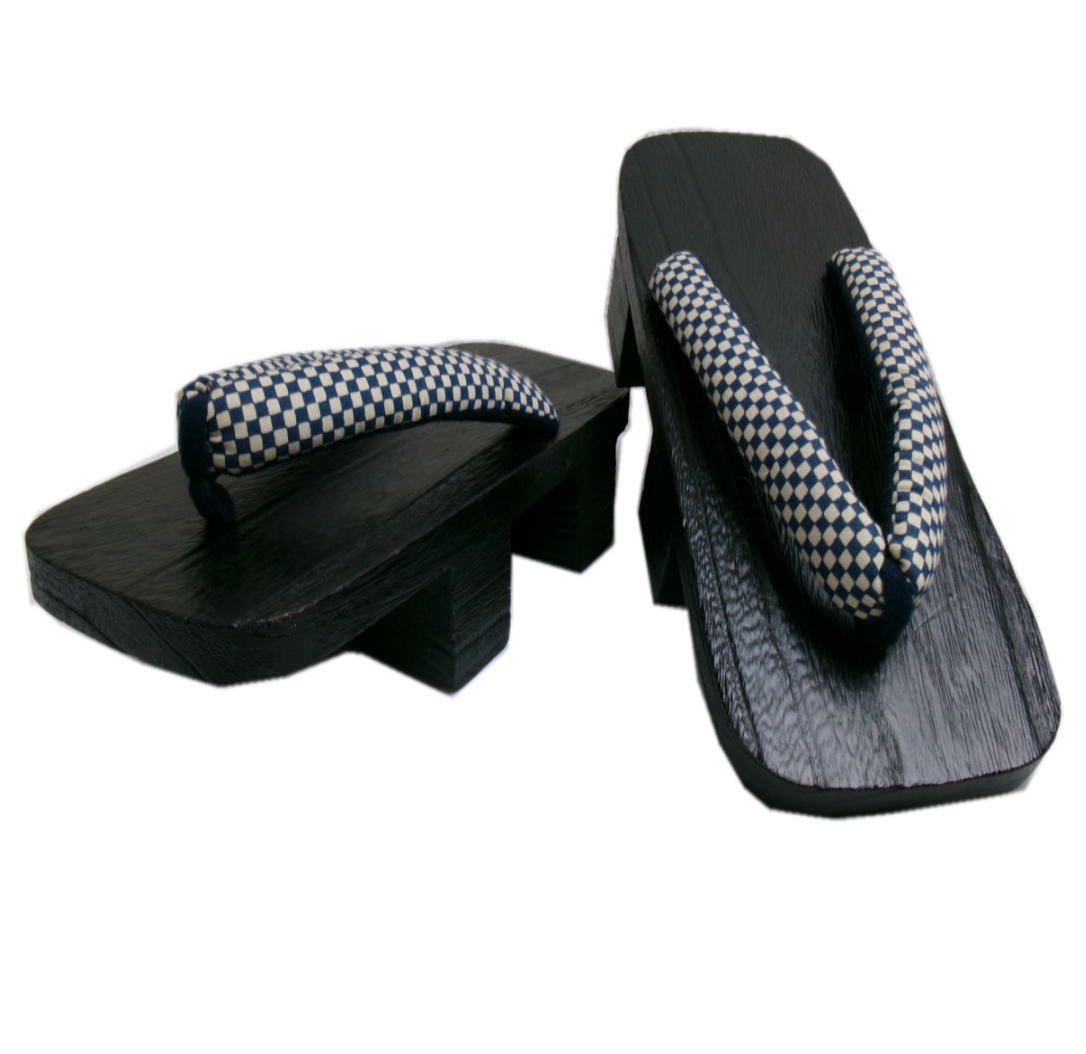 下駄 二枚歯 メンズ 男性 漆黒台 紺きなり市松 フリー 25.5cm 浴衣 甚平 着物 男物 紳士用 げた ゲタ 25cm 26cm