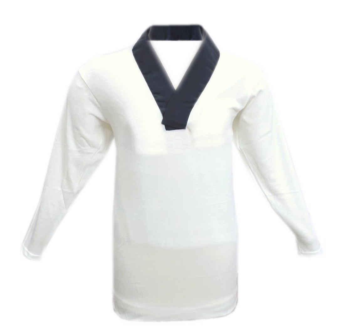 半襦袢 Tシャツ メンズ 男性 冬用 暖か 洗える 七分袖 白色地黒衿 M L 日本製 冬物 和装 着物 肌着