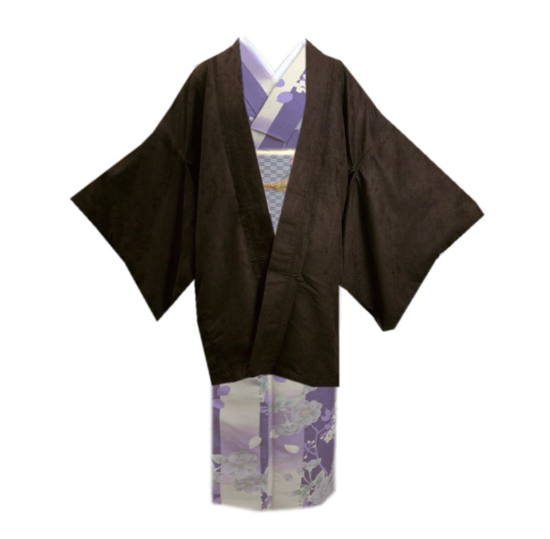 羽織 はおり コート スエード 濃茶色 フリー 無地 和装 着物 女性用 冬用 春 秋 冬物 レディース スウェード こげ茶