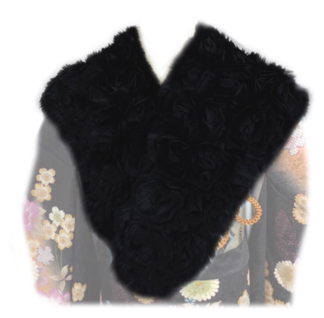 ラビット ショール ストール 黒 薔薇 振袖 成人式 卒業式 袴 着物 洋装