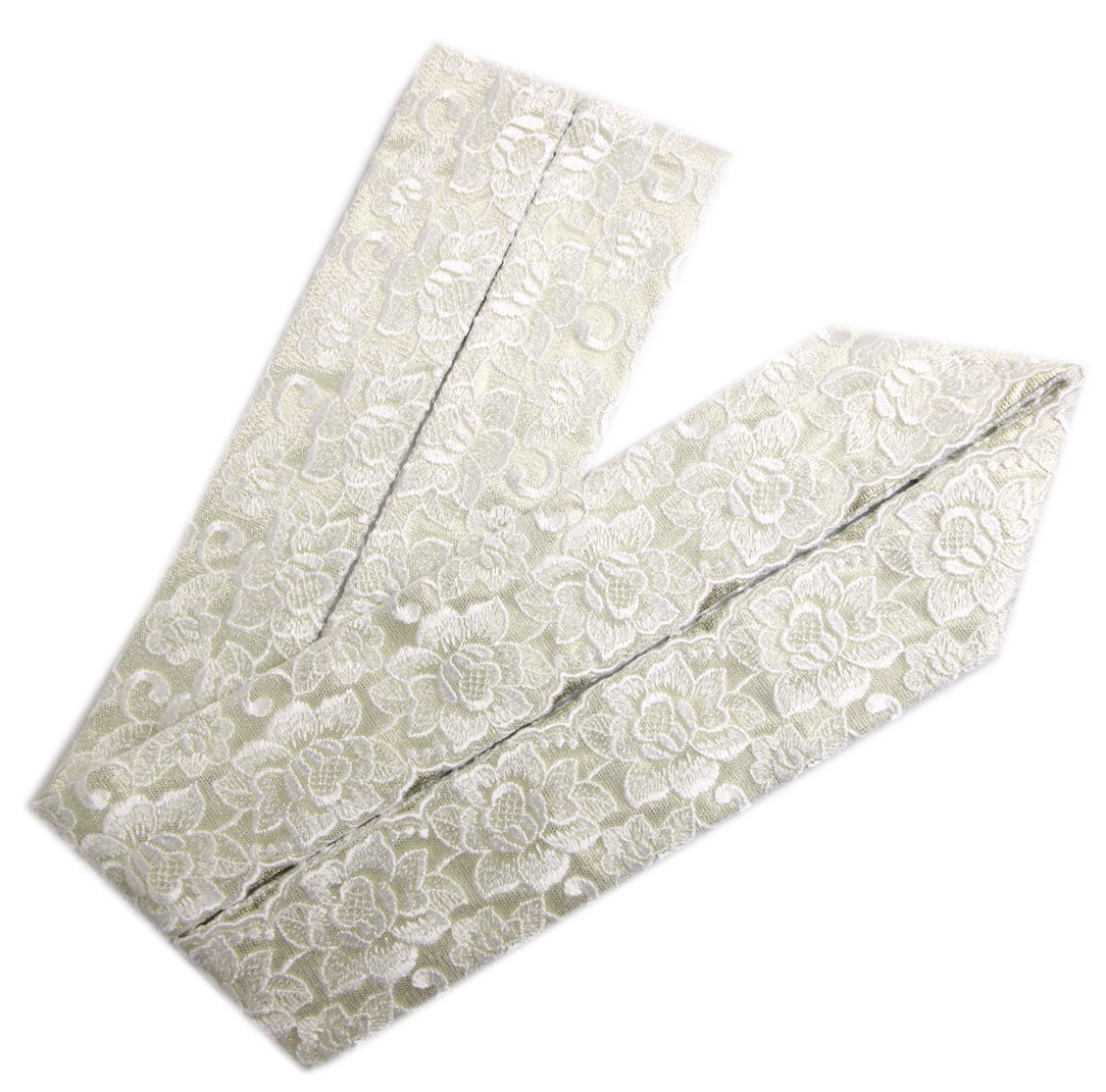 重ね衿 伊達襟 薄金色地 花柄模様白レース付 日本製 振袖 成人式 卒業式 袴 着物 訪問着 振袖用 飾り衿