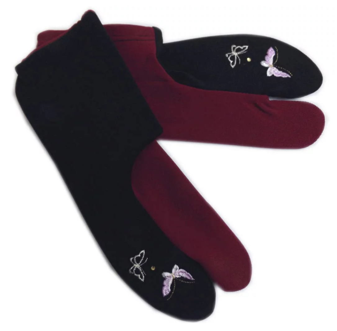 足袋 ラインストーン 刺繍 ストレッチ 蝶黒ボルドー フリー 日本製 22cm〜24.5cm 振袖 成人式 卒業式 袴 着物 女性用