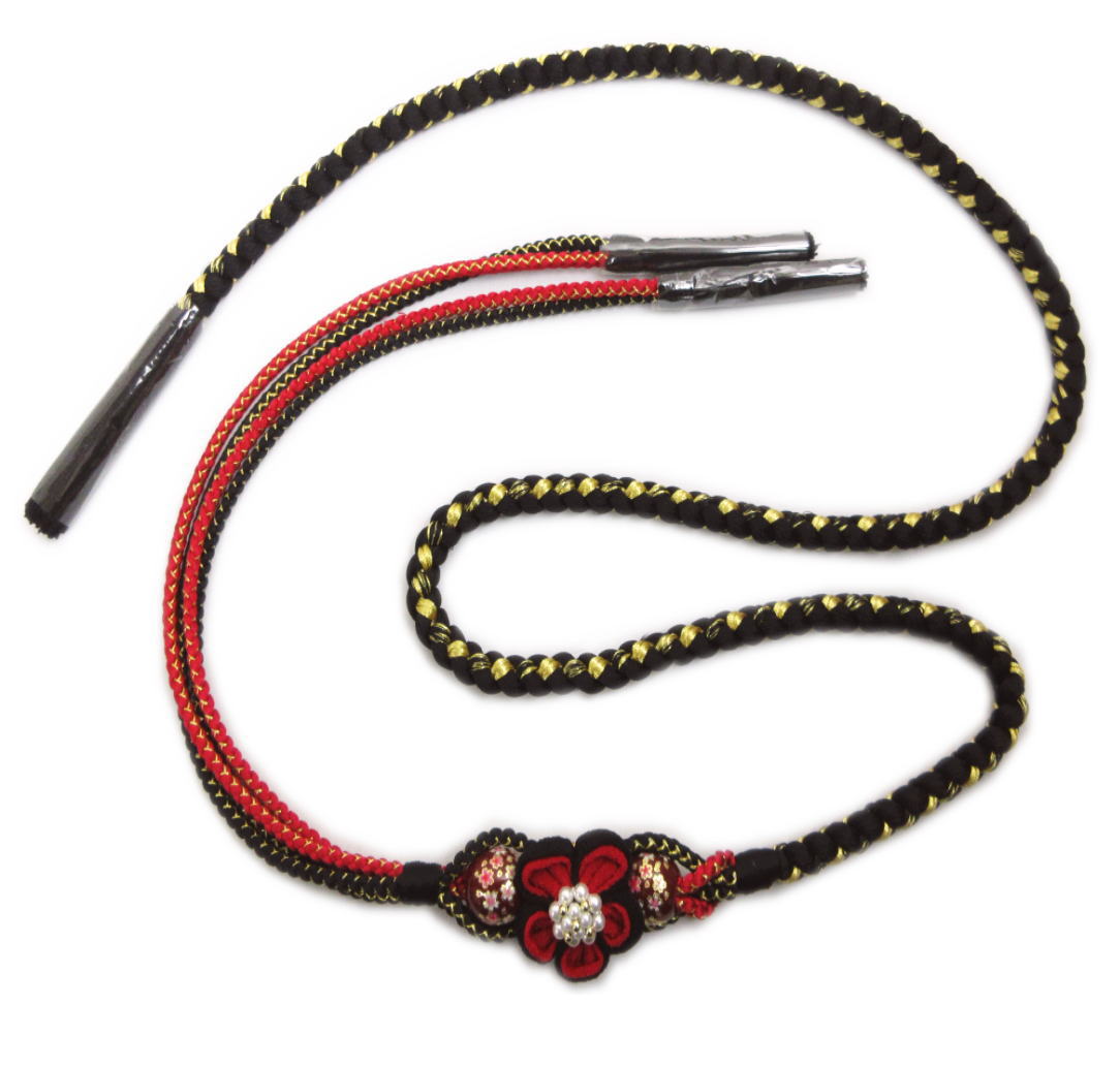 帯締め 帯〆 正絹 赤黒パール可憐花 濃赤花珠 飾り付 黒金 先割れ 2色使い 振袖 成人式 着物 帯じめ 振袖用 黒色