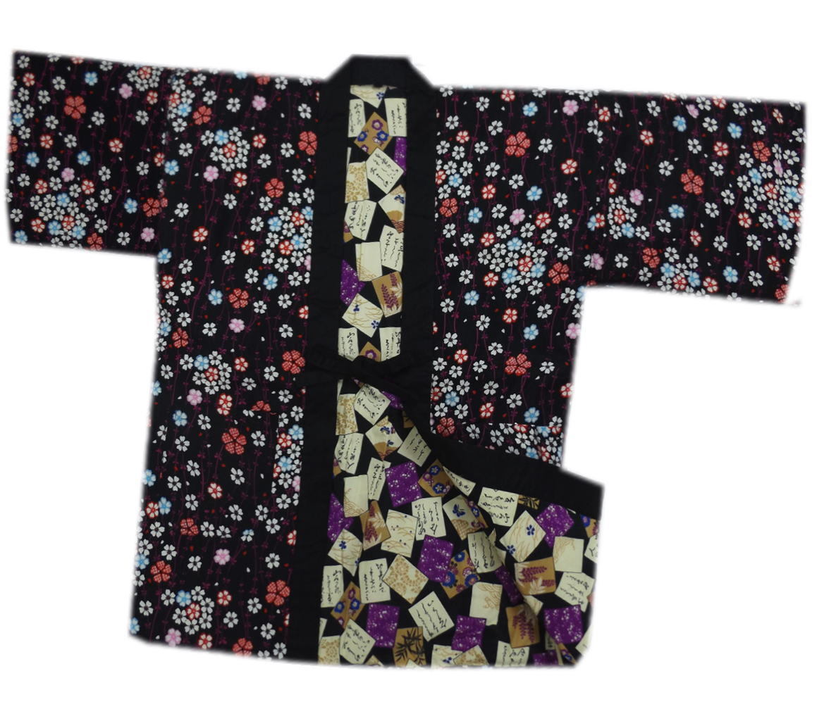 半天 袢纏 はんてん 女性用 和柄 リバーシブル 綿入 黒色地小桜枝垂れ桜 フリー
