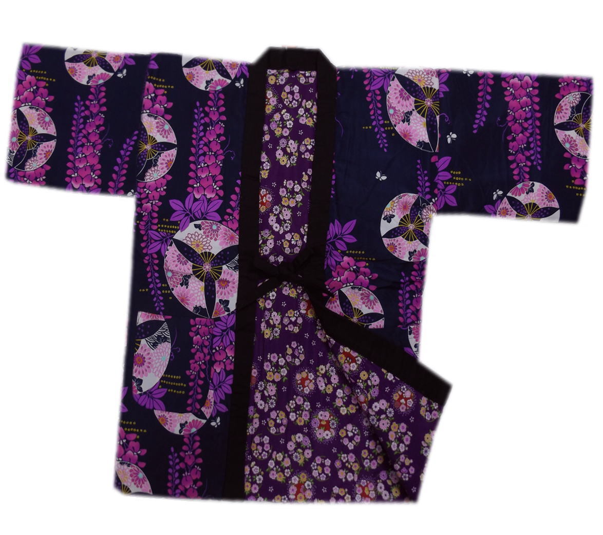 半天 袢纏 はんてん 女性用 和柄 リバーシブル 綿入 紺色地藤扇輪古典花 フリー