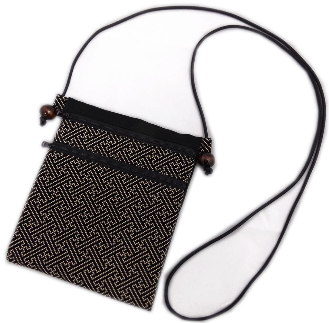 ポシェット バッグ ショルダー 和柄 印伝調 2ファスナー 黒色地さやがた 日本製 メンズ 男性用 女性用 着物 浴衣