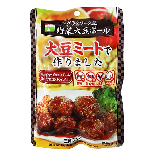 畑のお肉といわれる大豆にキャベツとたまねぎを加えて作った野菜大豆ボールに、野菜を煮込んだデミグラス風ソースを加えて仕上げました。ノンコレステロールなので肉食制限の方、美容と健康を心がけている方、菜食の方の健康的な食卓作りに是非ご利用ください。