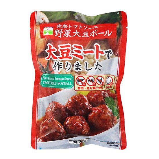畑のお肉といわれる大豆にキャベツと玉ねぎをたっぷり使って作った野菜大豆ボールに、完熟トマトをたっぷり使い、ハーブを加えてイタリアンソースの味に仕上げました。ノンコレステロールなので肉食制限の方、美容と健康を心がけている方、菜食の方の健康的な食卓作りに是非ご利用ください。