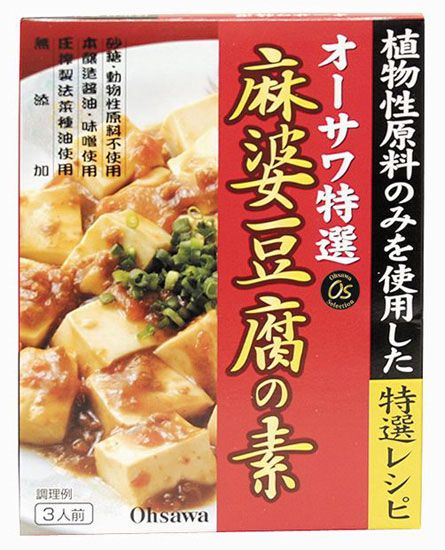 ベジミートひき肉タイプ使用。豆腐を用意するだけで簡単に麻婆豆腐がつくれます。国内産丸大豆使用の本醸造醤油・味噌使用 辛さ控えめなので、お子様でも食べやすいです。豆腐の代わりに、茄子を使えばおいしい麻婆茄子ができます。砂糖、添加物、動物性原料一切不使用。旨味とボリュームがあって辛さ控えめで食べやす味です。約3人分