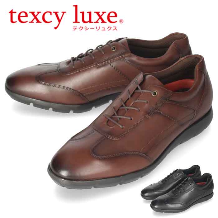 テクシーリュクス texcy luxe メンズ スニーカー ビジネスシューズ 本革 TU-7776 軽量 抗菌 紳士靴 幅広 3E ブラック 黒 ワイン asics アシックス