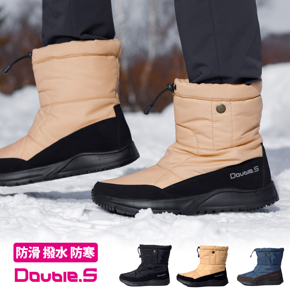 スノーブーツ メンズ レディース 滑らない 凍結 防滑 撥水 防寒 軽量 ボア 冬 温かい ショート Double.S ダブルエス カメリア スノトレ SD7002 Camellia 椿