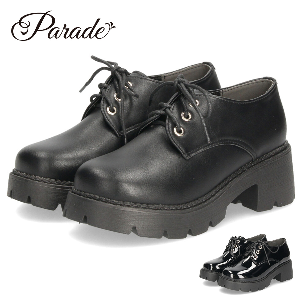 レースアップシューズ レディース 厚底 紐靴 タンクソール オックスフォード プラットフォーム 黒 エナメル 太ヒール 6cm マニッシュ 靴 ブラック Parade 1126