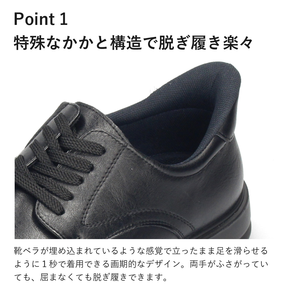 手を使わずに履ける靴 メンズ シューズ カジュアル 防水 本革 スリッポン ハンズフリー 履きやすい 歩きやすい 黒 ブラック 仕事 Parade 楽すぽっ 97080 97081