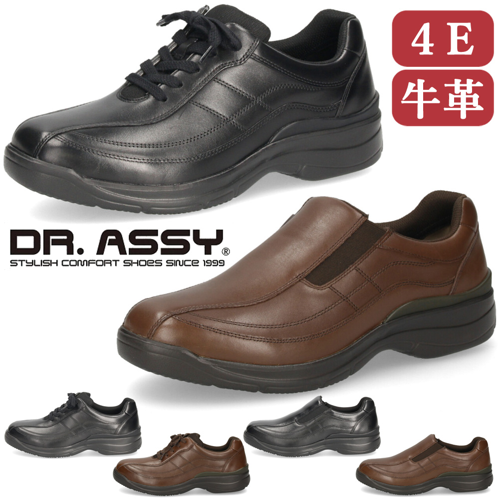 革靴 メンズ 本革 4E 幅広 スリッポン 紐 ウォーキングシューズ 黒 ブラック ブラウン 撥水加工 ファスナー付き ドクターアッシー DR8014 DR8015 Dr.ASSY
