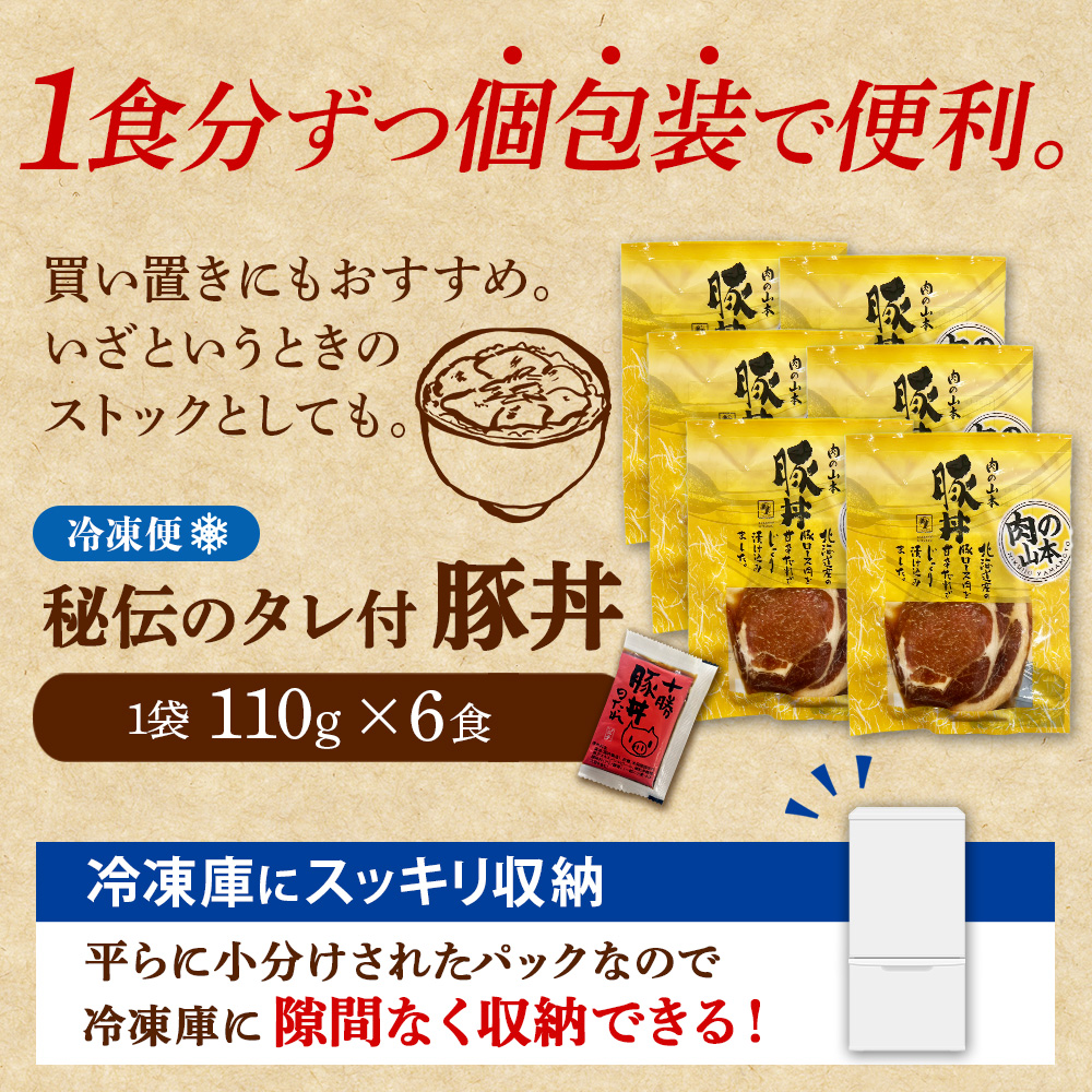 | 商品内容 | 北海道産 豚ロース肉 110g×6食 特製かけダレ 25g ×6袋 |